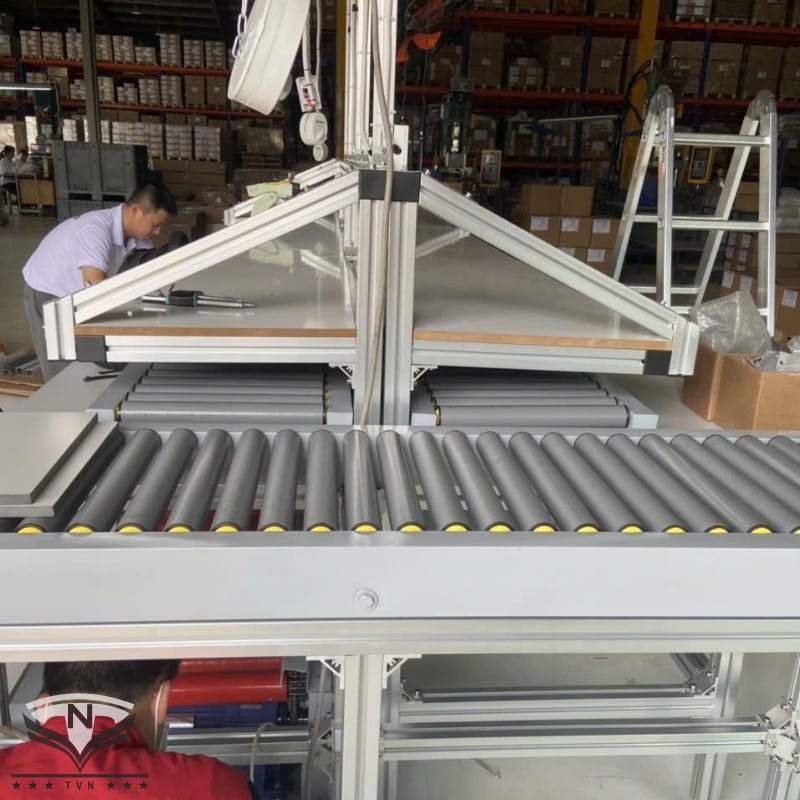 The Plastic Roller Conveyor is the optimal solution for transporting light goods, designed specifically for requirements demanding quiet operation and chemical corrosion resistance. The system utilizes rollers machined from high-grade engineering plastics (PVC, PPR, POM, PE), featuring a lightweight structure and a smooth surface that protects products from scratches during transport.