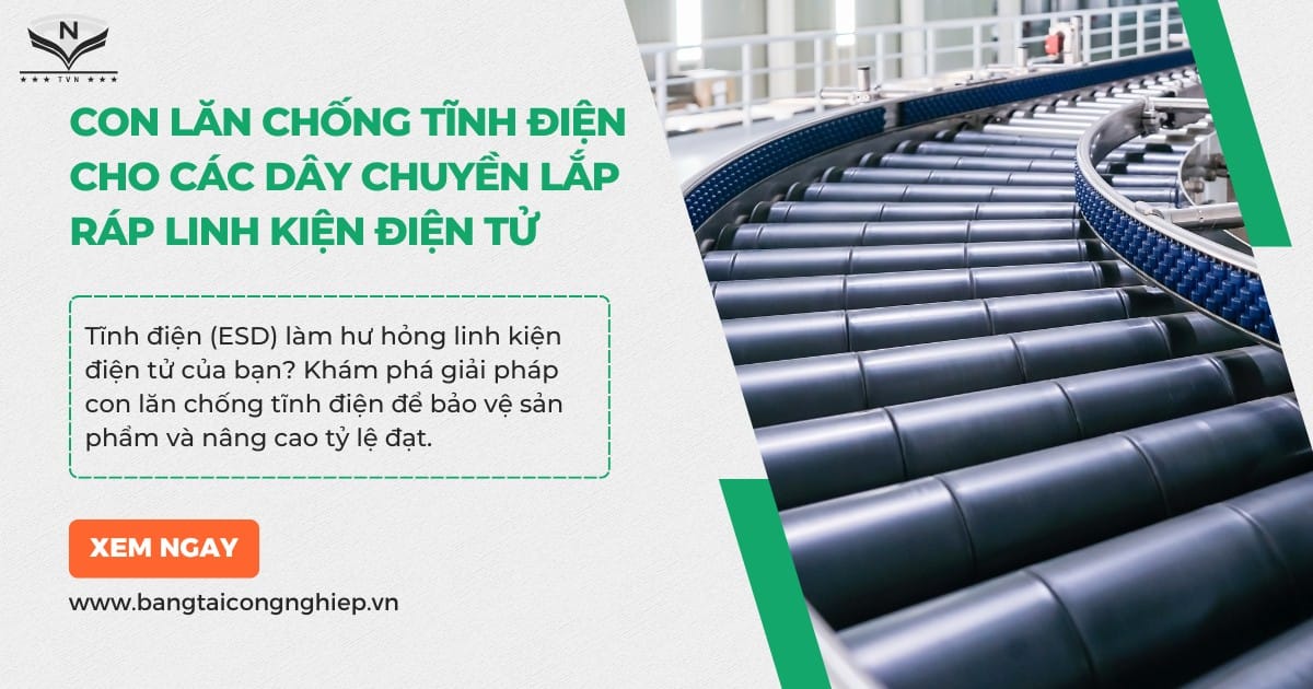 Trong đó, con lăn chống tĩnh điện đóng vai trò trung tâm. Nhờ cấu tạo từ vật liệu ESD và khả năng dẫn điện ổn định, con lăn giúp kiểm soát điện tích ngay tại điểm tiếp xúc, ngăn phóng điện lan truyền qua linh kiện. Việc trang bị đúng loại con lăn đạt chuẩn không chỉ bảo vệ sản phẩm mà còn giảm thiểu rủi ro dừng dây chuyền, nâng cao độ tin cậy cho toàn bộ quy trình sản xuất điện tử.
