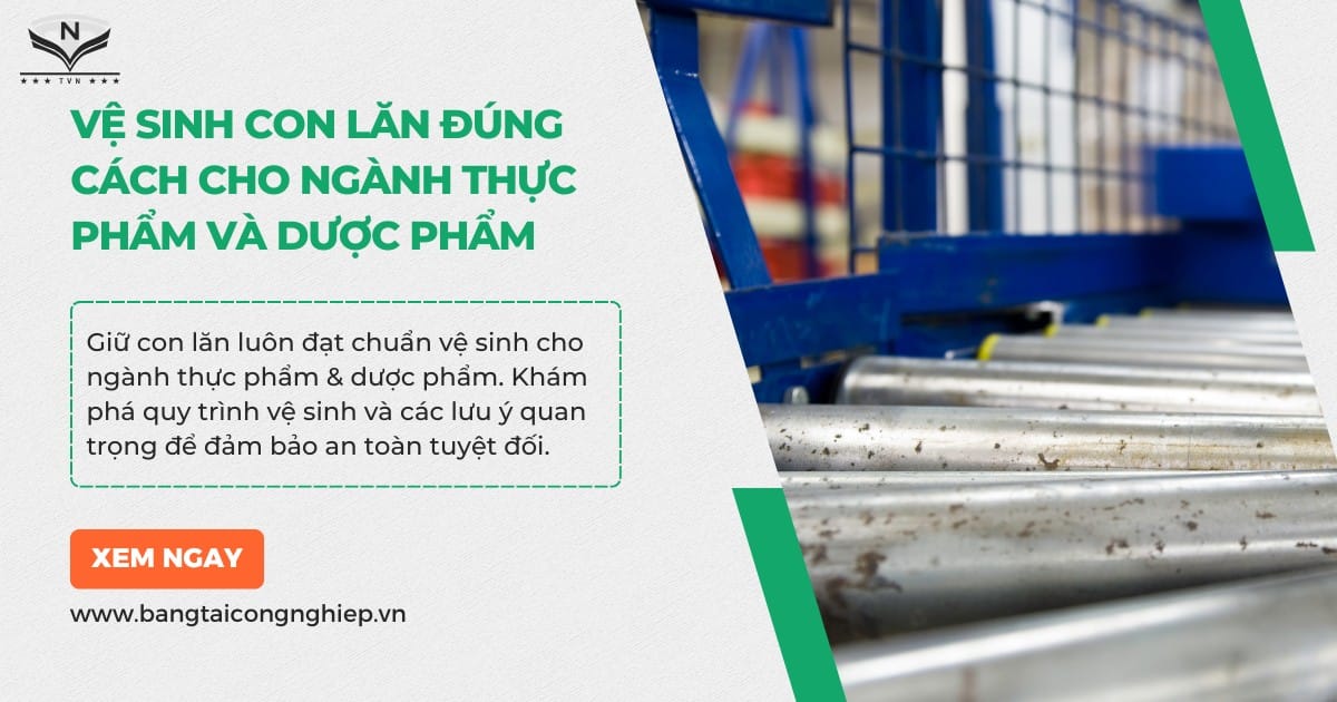 Trong ngành thực phẩm và dược phẩm, một hạt bụi bẩn nhỏ cũng có thể trở thành thảm họa, dẫn đến lây nhiễm chéo, thu hồi sản phẩm và hủy hoại uy tín thương hiệu. Vì vậy, vệ sinh con lăn băng tải không chỉ là công việc định kỳ mà là một quy trình sống còn, quyết định đến sự an toàn của sản phẩm và sự thành công của doanh nghiệp. Bài viết này từ Xưởng Cơ Khí TVN sẽ cung cấp một hướng dẫn toàn diện, giúp bạn xây dựng quy trình vệ sinh chuẩn mực và hiệu quả.
