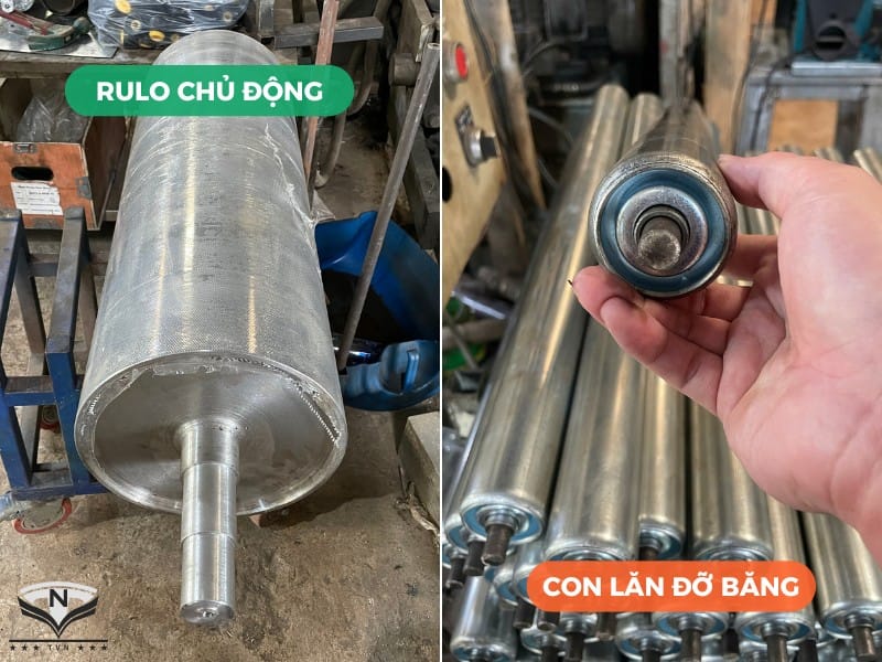 | Chức năng chính | Truyền động & Căng dây: Kéo dây băng tải chuyển động (Rulo chủ động) hoặc làm điểm quay đầu để căng dây (Rulo bị động). | Nâng đỡ: Đỡ trọng lượng của dây băng tải và hàng hóa nằm trên dây, giúp dây không bị võng xuống. |